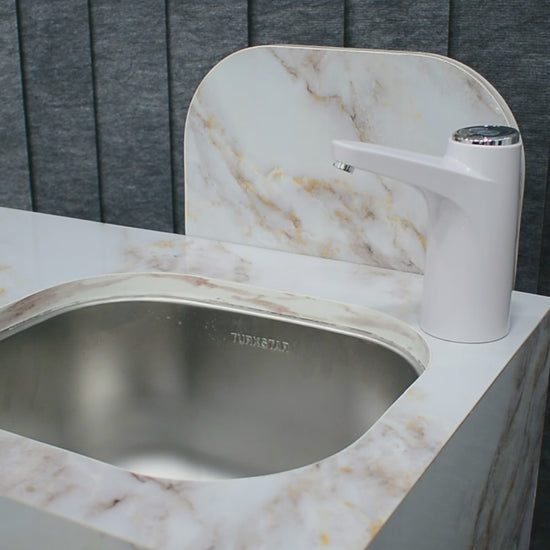 Crafted from waterproof foam board, the AquaGo Mobile Sink is built for durability and long-lasting use. Its premium locking wheels and handles make it simple to move wherever needed. Available in a variety of colors, including custom options, it enhances the look of any space. Featuring a sturdy 0.8 mm heavy-duty sink and robust tanks with multiple safety features, it guarantees leak-free, hassle-free operation.